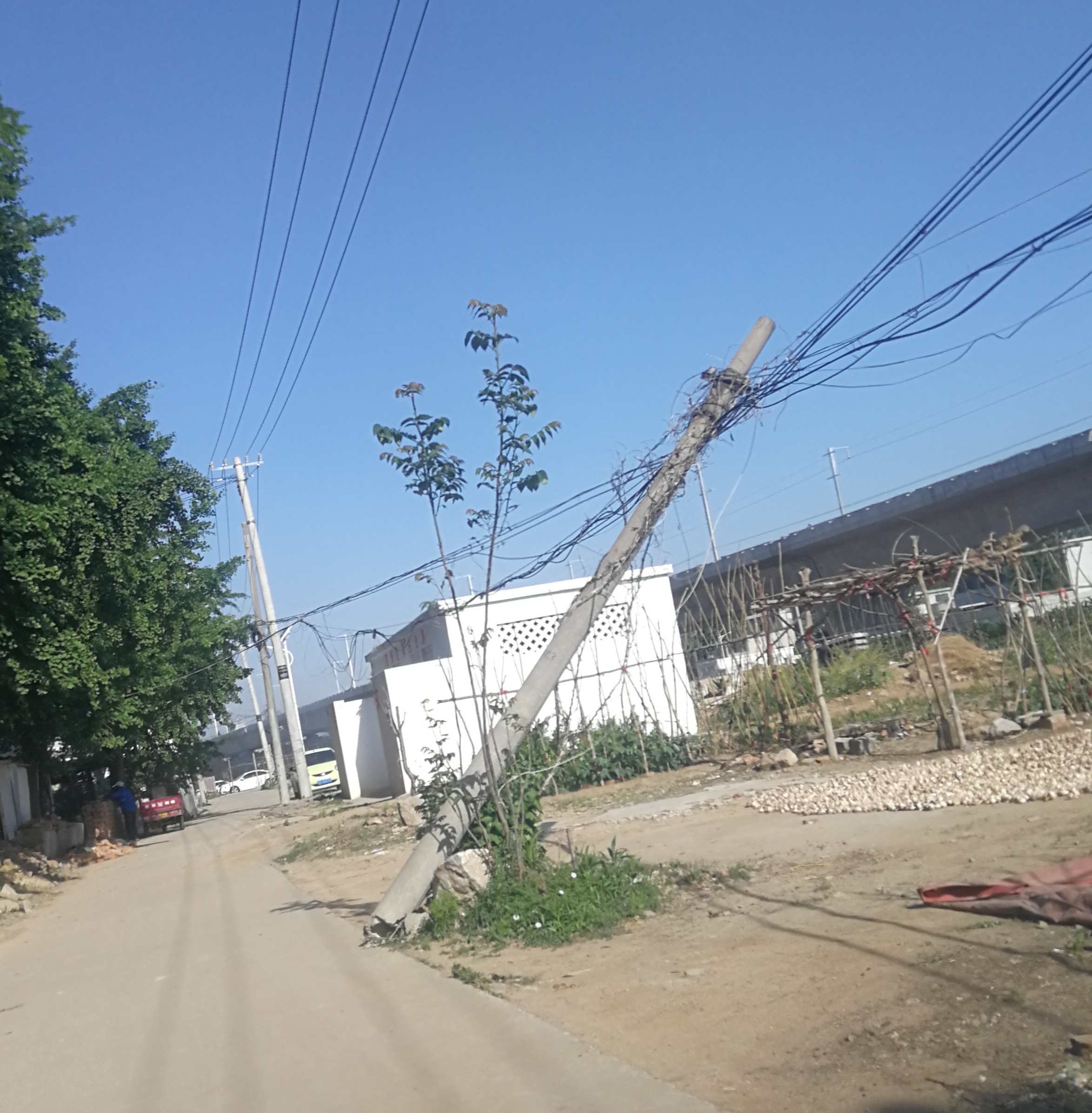 上周17号的晚上,刮了大风,将一个通信用的电线杆吹断了,底部已完全断裂,只有上边被一些网线拉着,没有完全倒地。之后几天都打个电话,供电、移动的都来看过,已确定不属于他们公司的,就是电信公司一直无人来,每次打10000号都说已经催促办理。请局长亲自过问下。