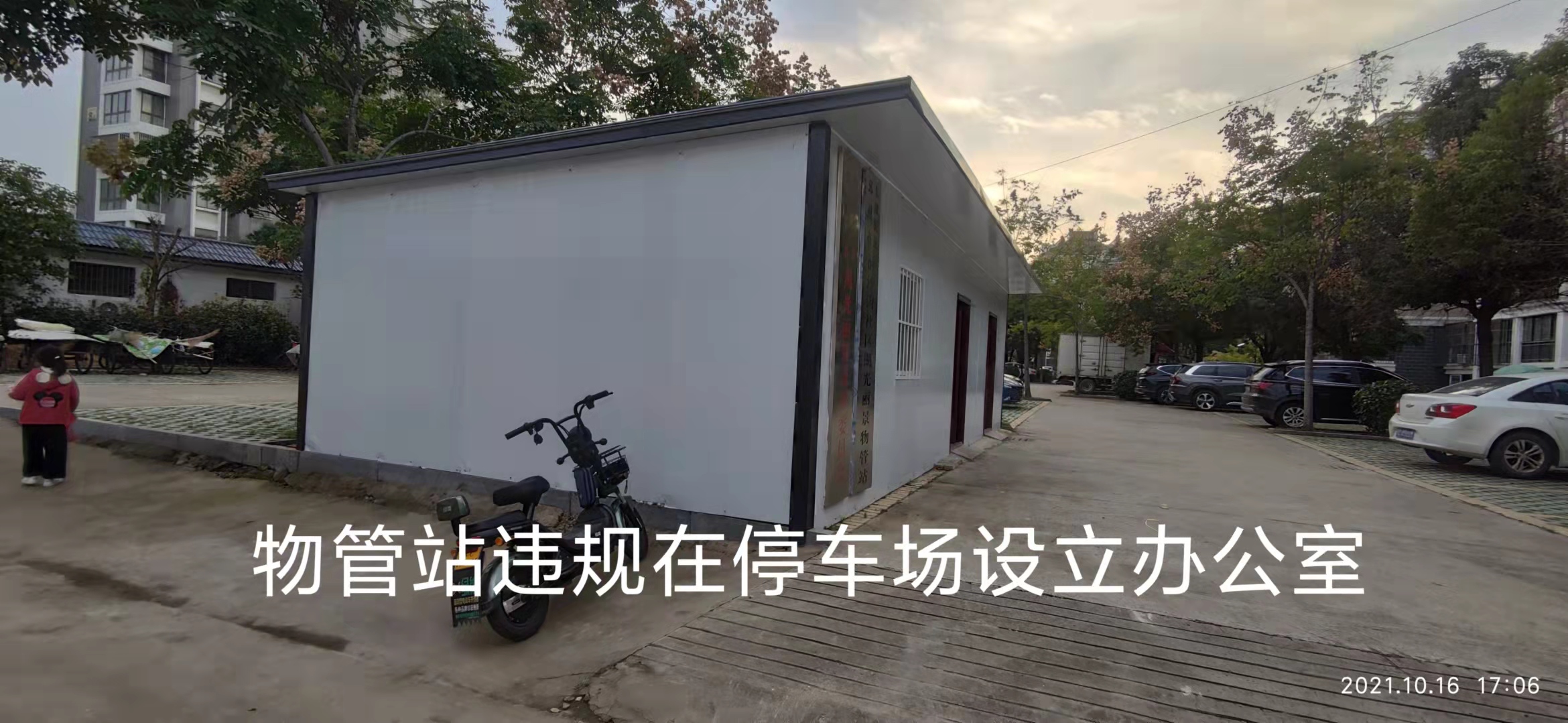 湖光丽景小区物管站在未向贵局审批和业主及业主大会同意的情况下,擅自改变小区用地规划及用途,在东门内侧用水泥墙建设小院,同时大肆在小区停车场用铁皮搭建物业用房,恳请贵局依法依规予以拆除。