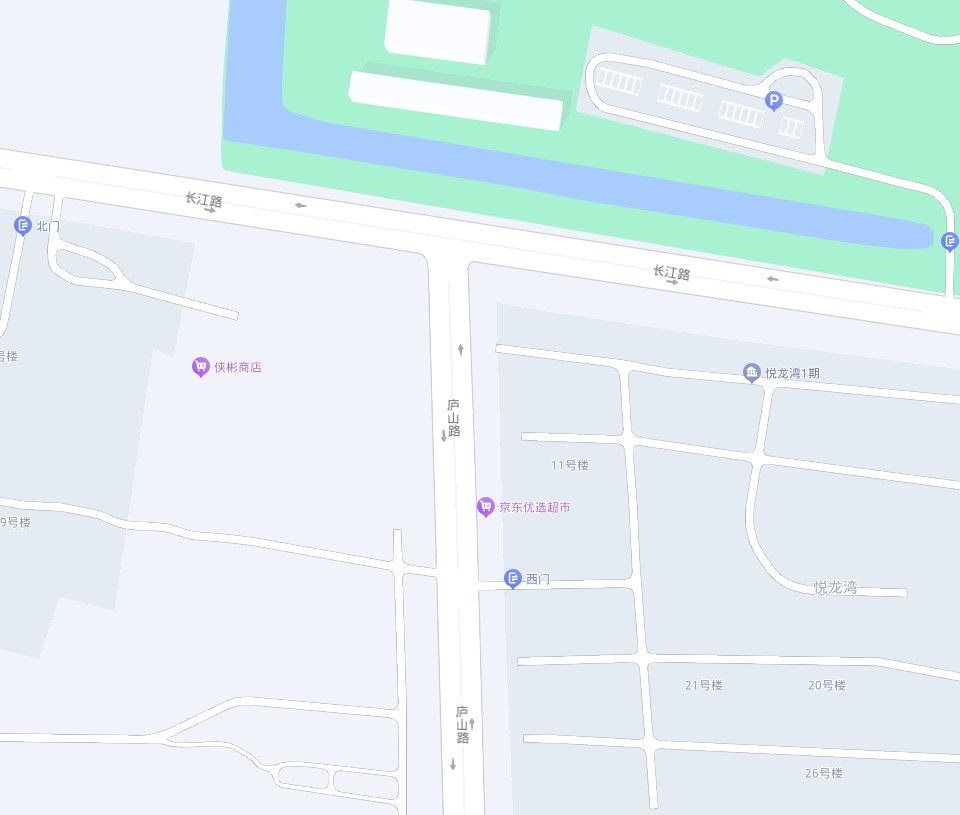 长江路&庐山路均已开通通行,交汇处长江路中间隔离带一直未拆除。