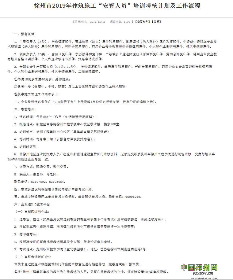 由于字数有限,前图为徐州市2019年建筑施工“安管人员”培训考核计划及工作流程,如有疑问可查看徐州市住房和城建建设局相关文件
